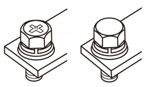 A Standard Screw type with a hex bolt that also supports a Phillips screwdriver. For frames with screw sizes M8 or M10, combination head hex bolts are used.