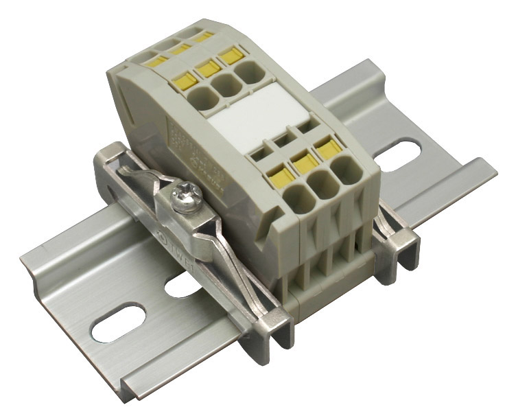 Releasing the button completes the connection, greatly reducing wiring time for terminal block installation.