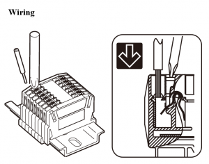 While pressing the button with a Phillips screwdriver, insert the wire.